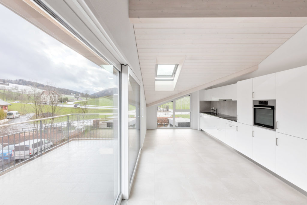 Les 2.5, 3.5 et 4.5 pièces se répartissent sur trois étages, et la taille du lotissement joue un rôle important dans la construction, rendant l’immeuble à dimension